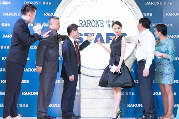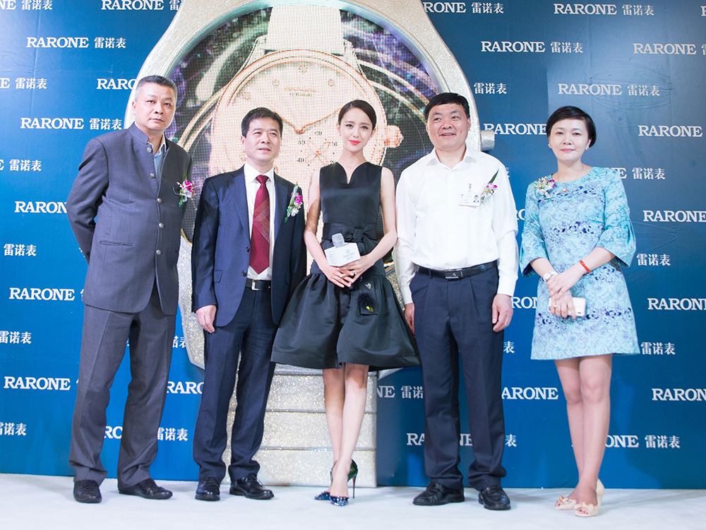 在新品發布環節,雷諾表業總經理詹江洲先生,哈工大首創科技股份有限公司副總經理、寧波第二百貨商店總經理,全國勞動模范黃炎水先生,中國國際鐘表展創始人兼籌委會主席,深圳市鐘表行業協會執行會長朱舜華先生以及深圳市雷諾表業副總經理高湘蓮女士和佟麗婭一同為2015雷諾博鰲·鼎智系列星月女表新品揭幕。即日起,雷諾新品星月女表將正式亮相全國各地的雷諾專柜。隨后,雷諾表業總經理詹江洲先生將剛剛發布的星月女表贈予佟麗婭并親手為她佩戴。