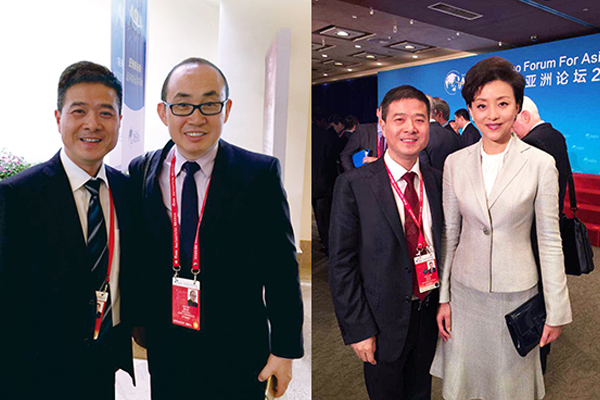(雷諾表創(chuàng)始人之一、總經(jīng)理詹江洲先生與SOHO中國董事長潘石屹先生(左圖)、知名主持人楊瀾女士合影)